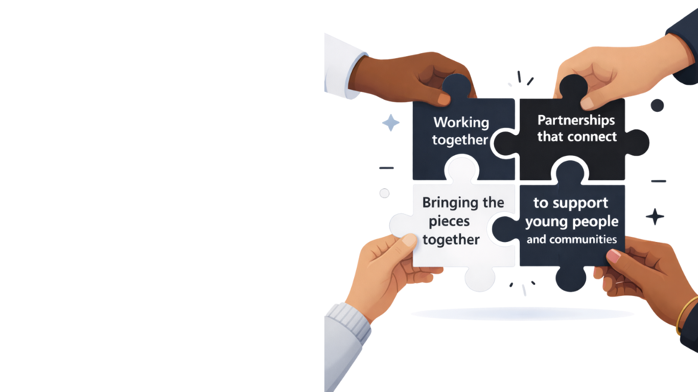 No single organisation can solve the complex challenges facing young people. That's why we believe in partnership – bringing together different perspectives, resources, and expertise to create something greater than the sum of its parts.